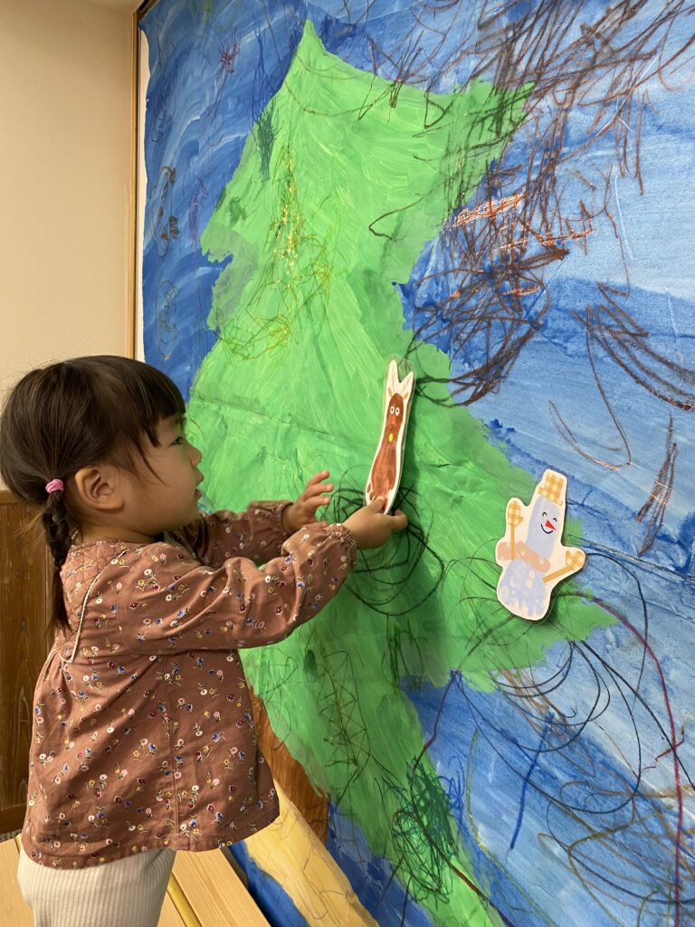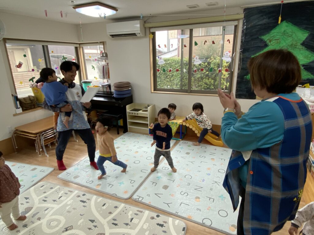 保育園のお部屋に帰った後は、クリスマスソングに合わせて歌をうたったり、踊ったり…