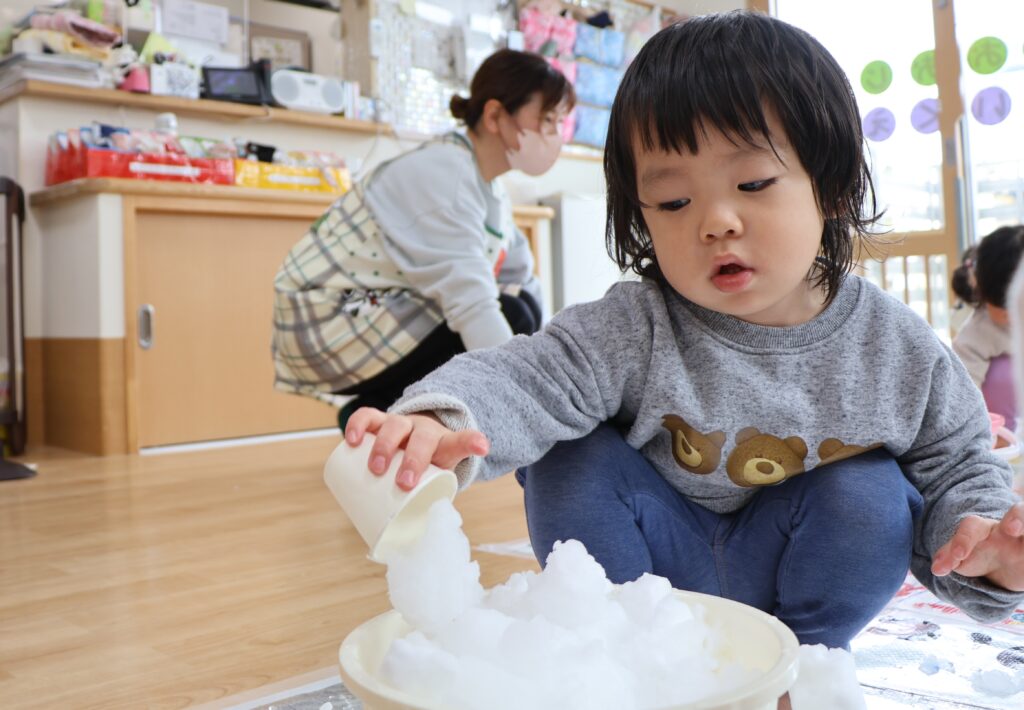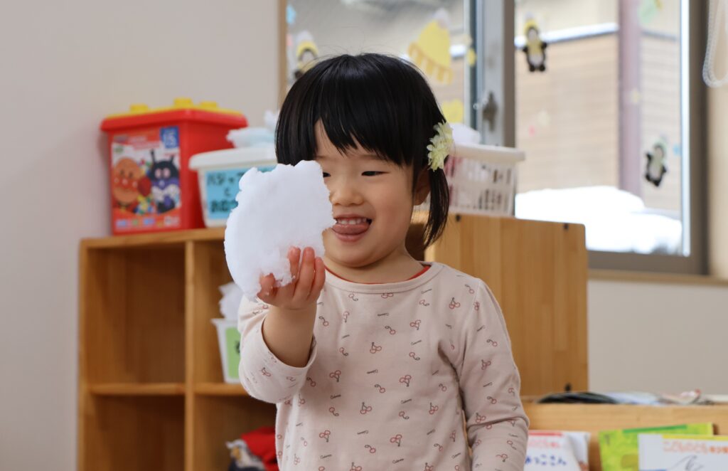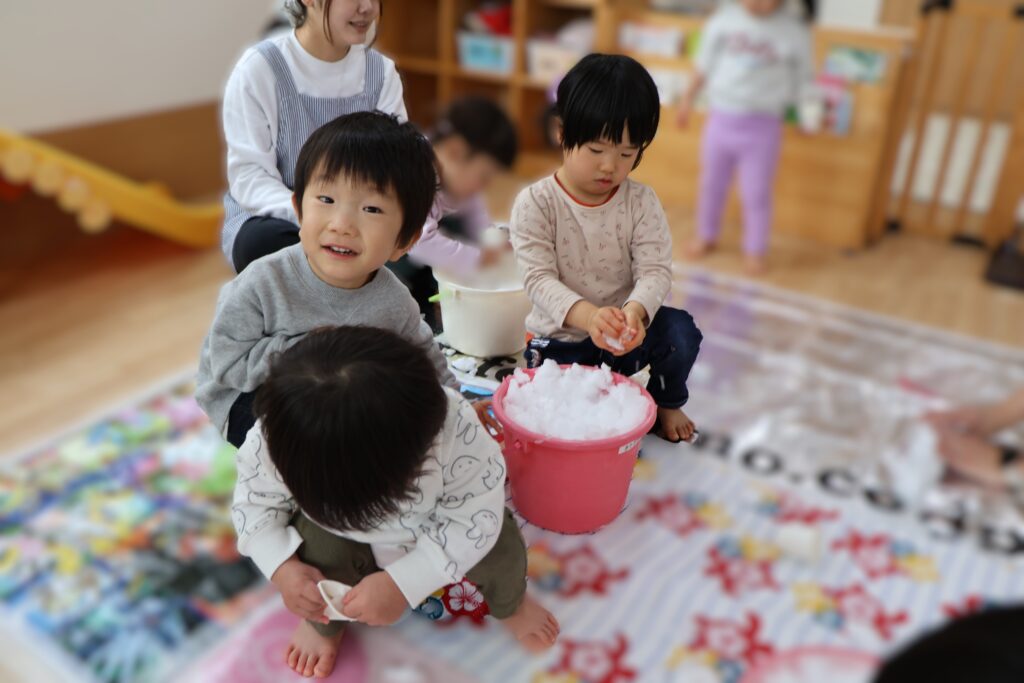 今日はせっかくなので、雪遊びをしました。それもお部屋で!!
