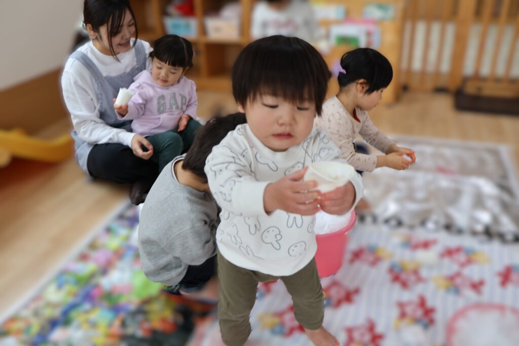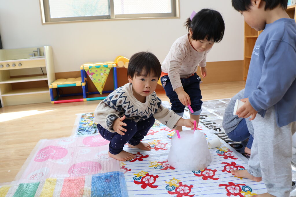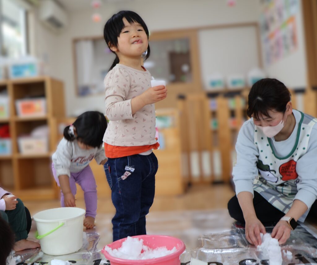 「ジュースできたよ」「アイス作ったよ」と、ごっこ遊びにもなってみんな楽しそうです。