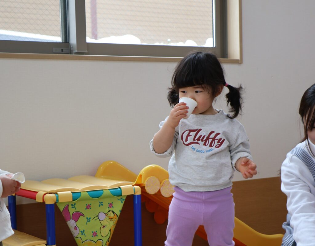 子どもたちはほっぺを赤らめながら元気に登園していました。