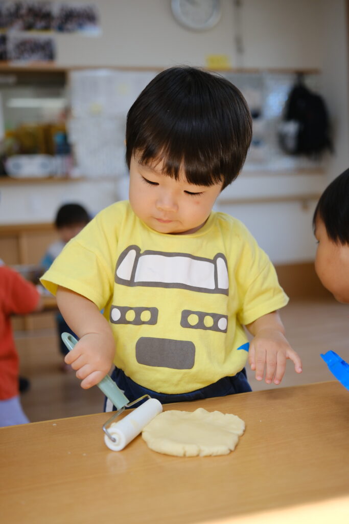 これはね、クッキーの生地です。この生地をよぉ~く伸ばして・・・。