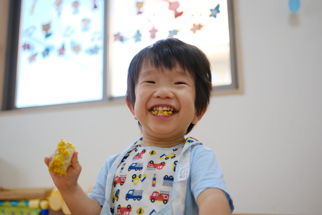 おやつに季節の野菜「トウモロコシ」が登場♬