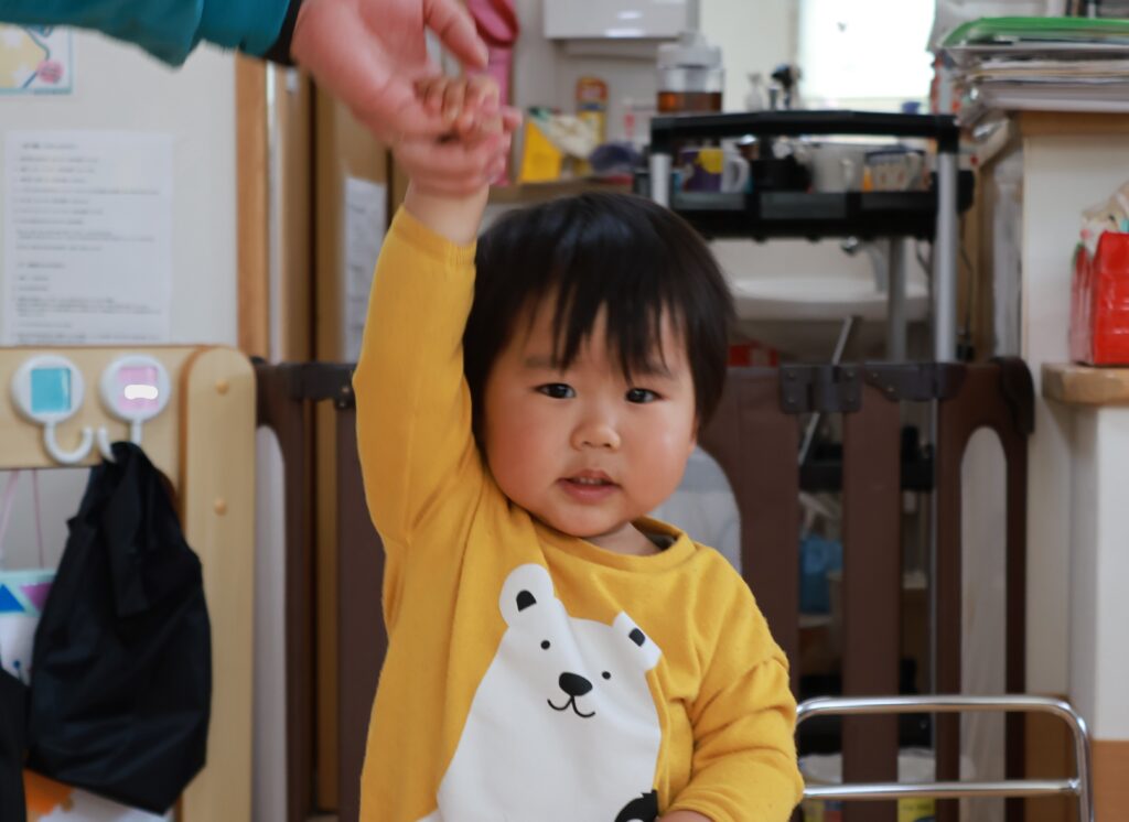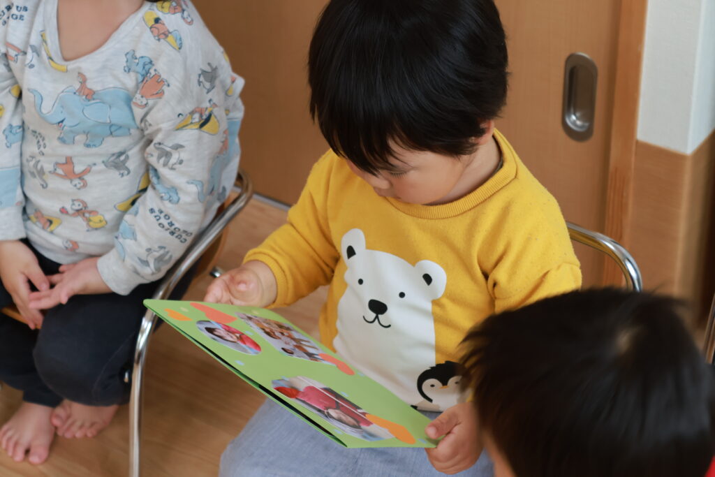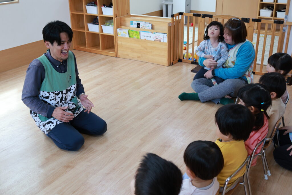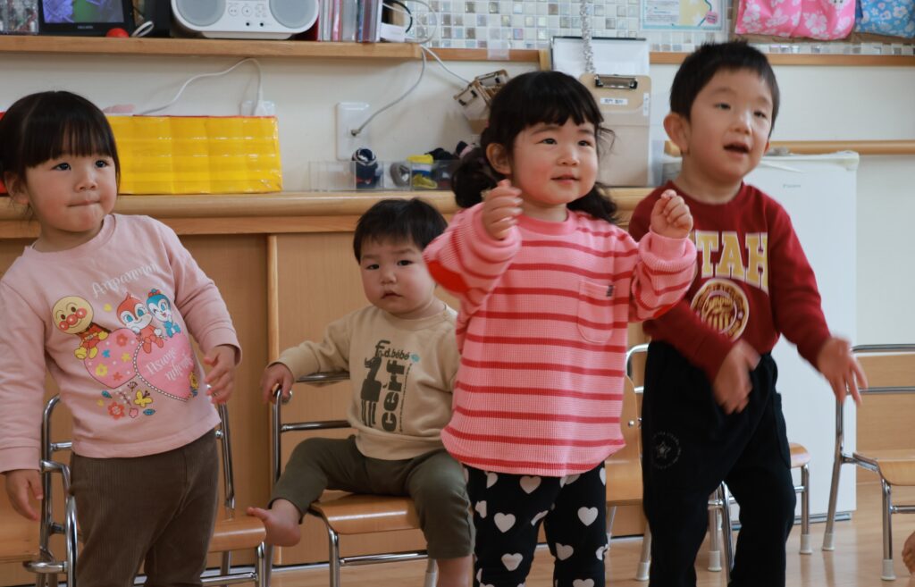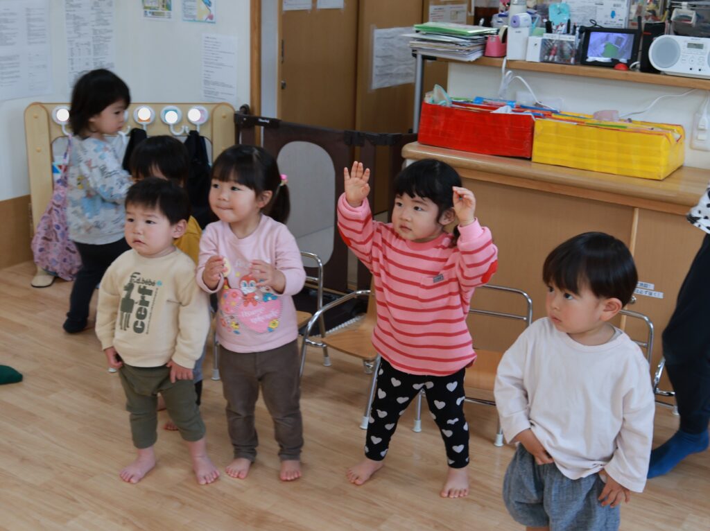 最初はみんなで“手をたたきましょう”、“ぞうさんのぼうし”を歌ったよ!