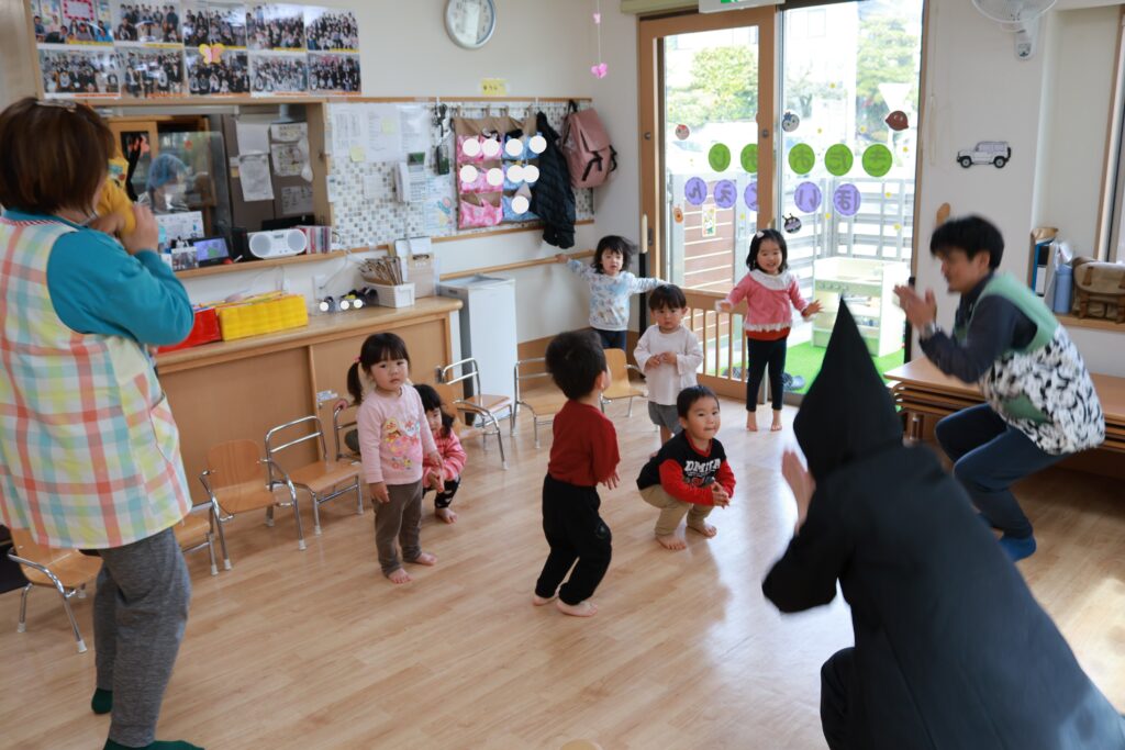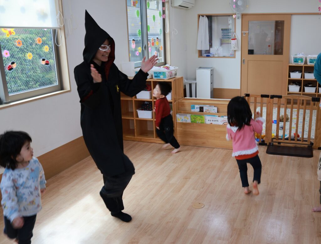 たくさん身体を動かして、そろそろとんがりマンとさようならの時間…。