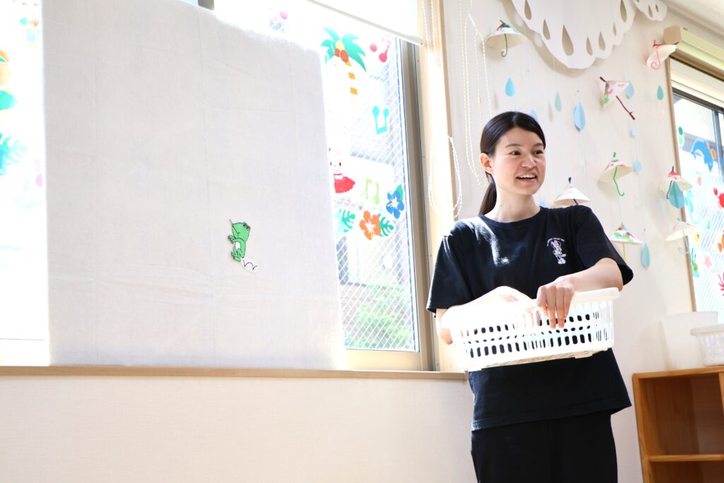 いろんな色に変わるしゃぼん玉。みんなも大好きだからわくわくして見ています。