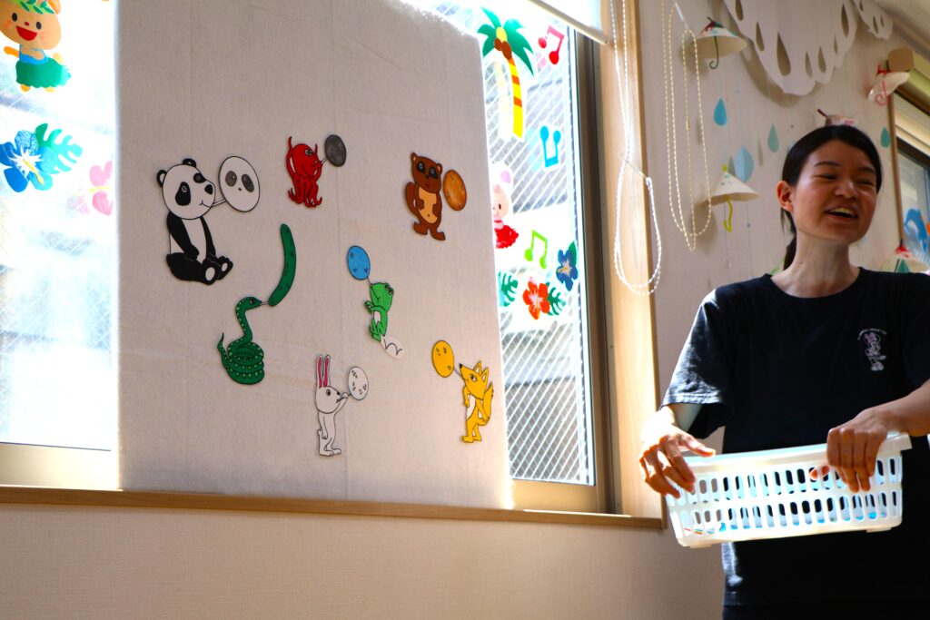 先生の出し物は・・・、パネルシアターの登場です。