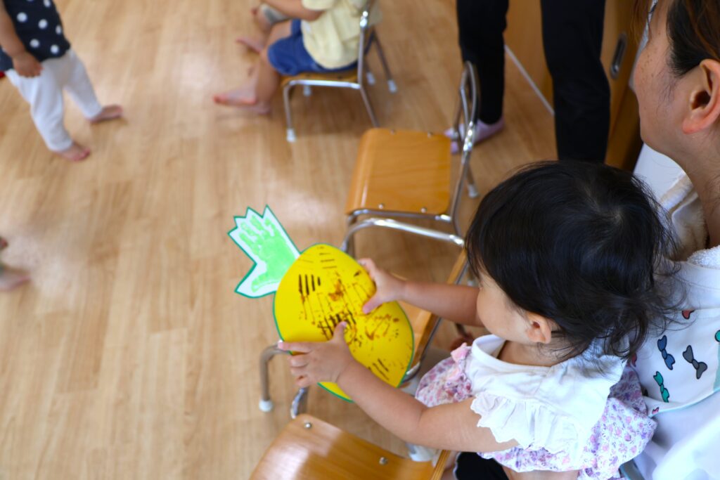 みんなのお手々や、スタンプごっこをしてステキなパイナップルができました。