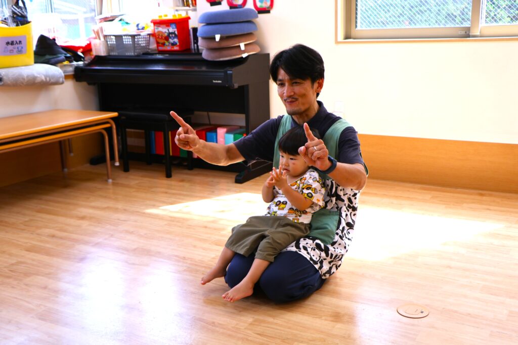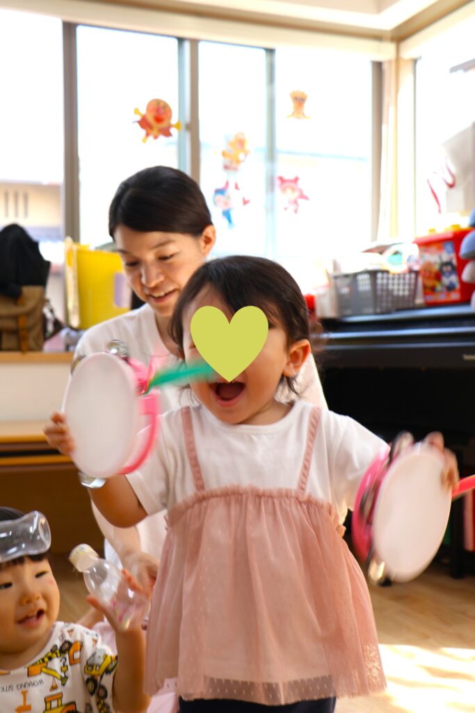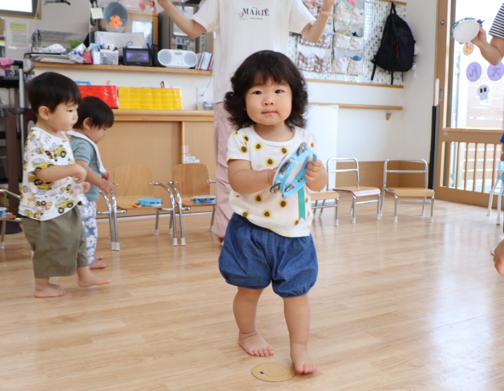 おもちゃのチャチャチャや、アンパンマンのサンサンたいそう♪の曲に合わせてノリノリです。