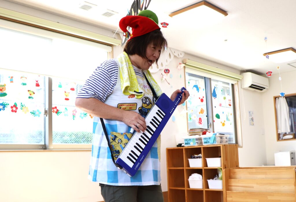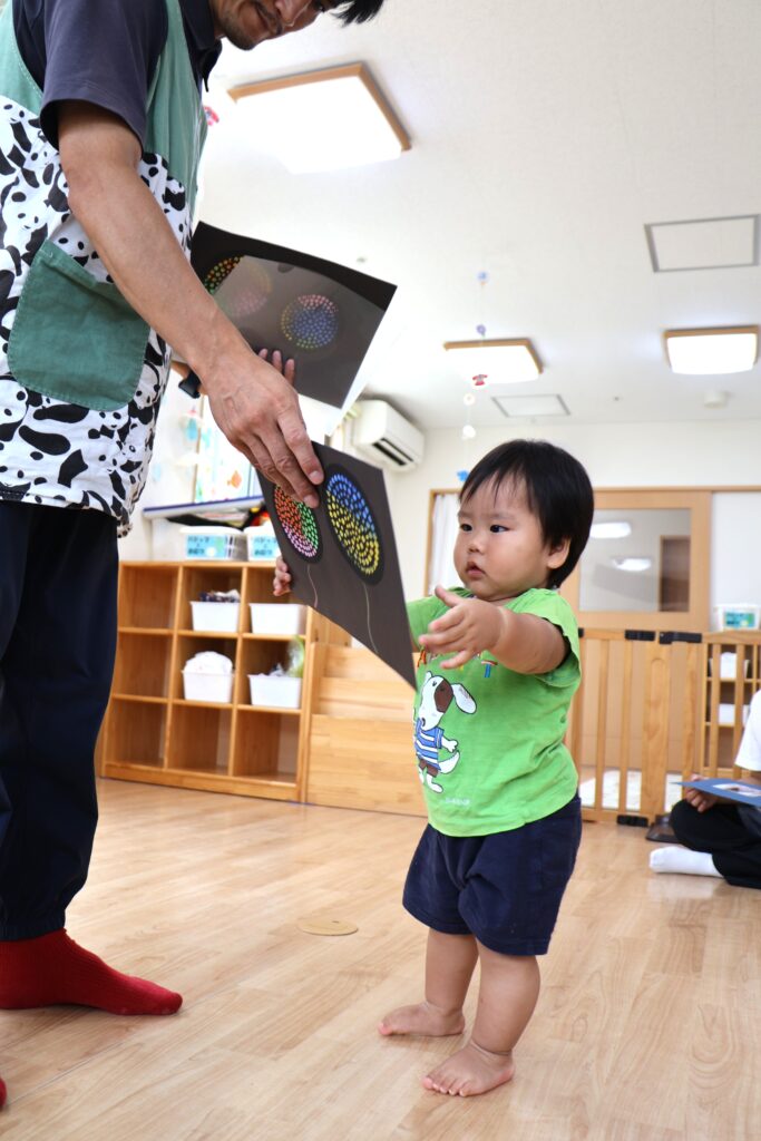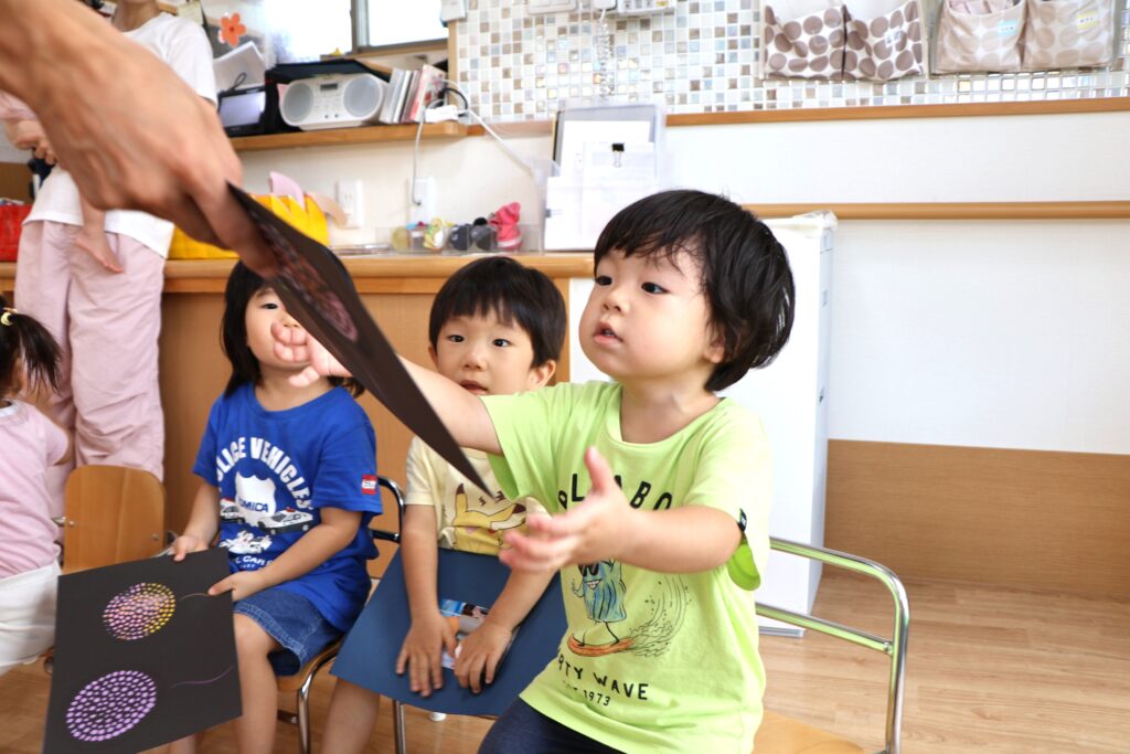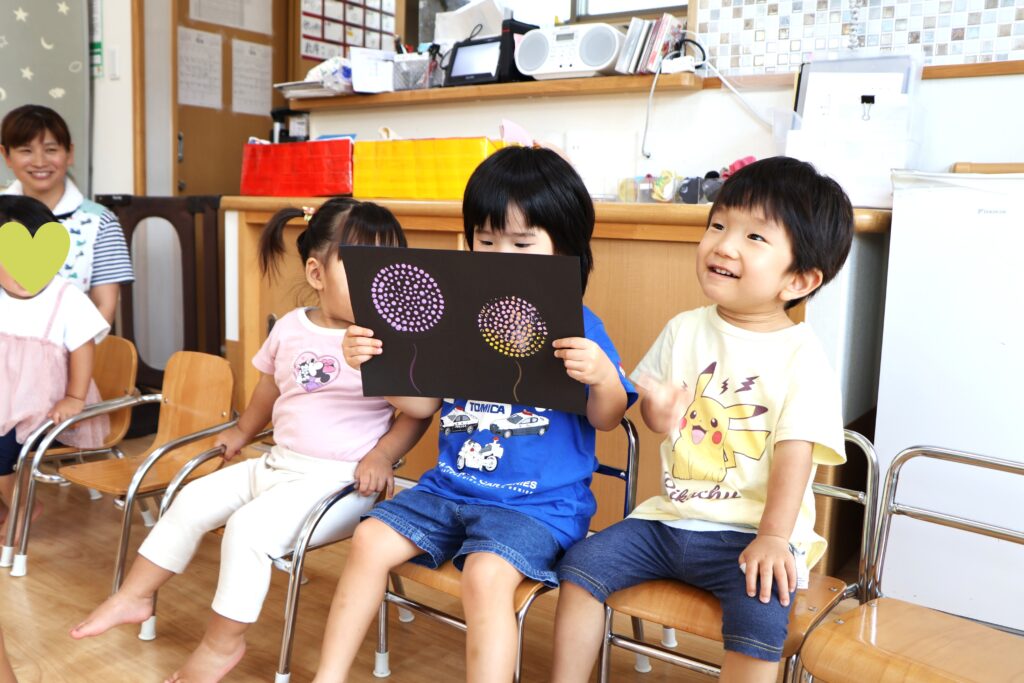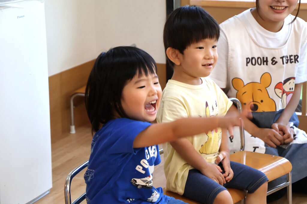 8月のお歌、♬やまびこさん を楽しく歌った後は・・・。