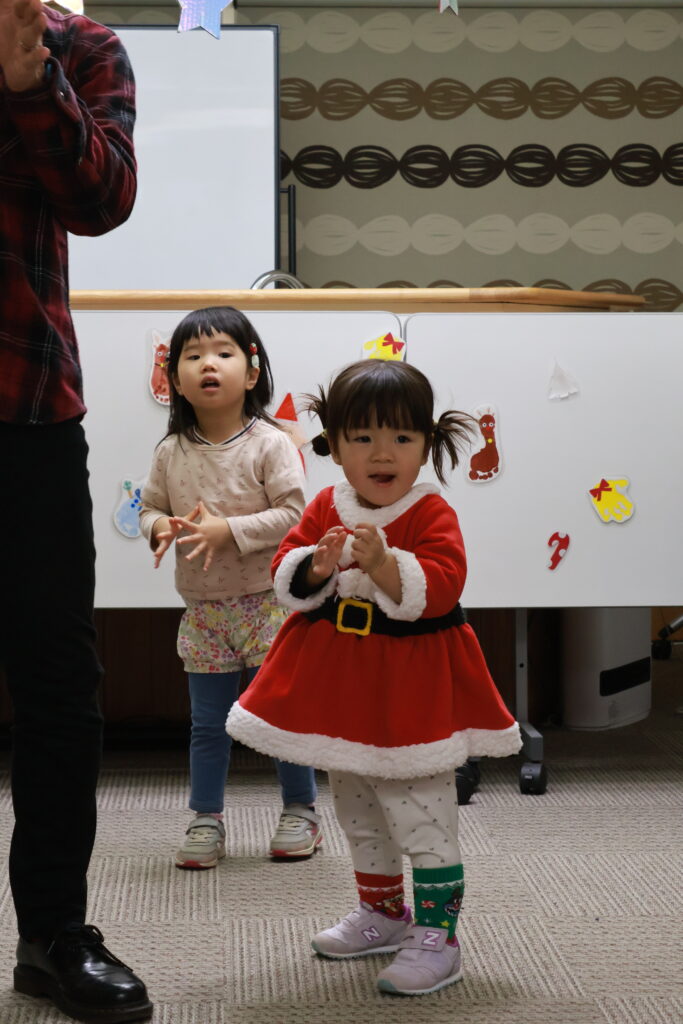 クリスマス会も終盤に近付いてきた頃…きたおおじ保育園の子ども達のところにもサンタさんとトナカイさんがやってきてくれました!