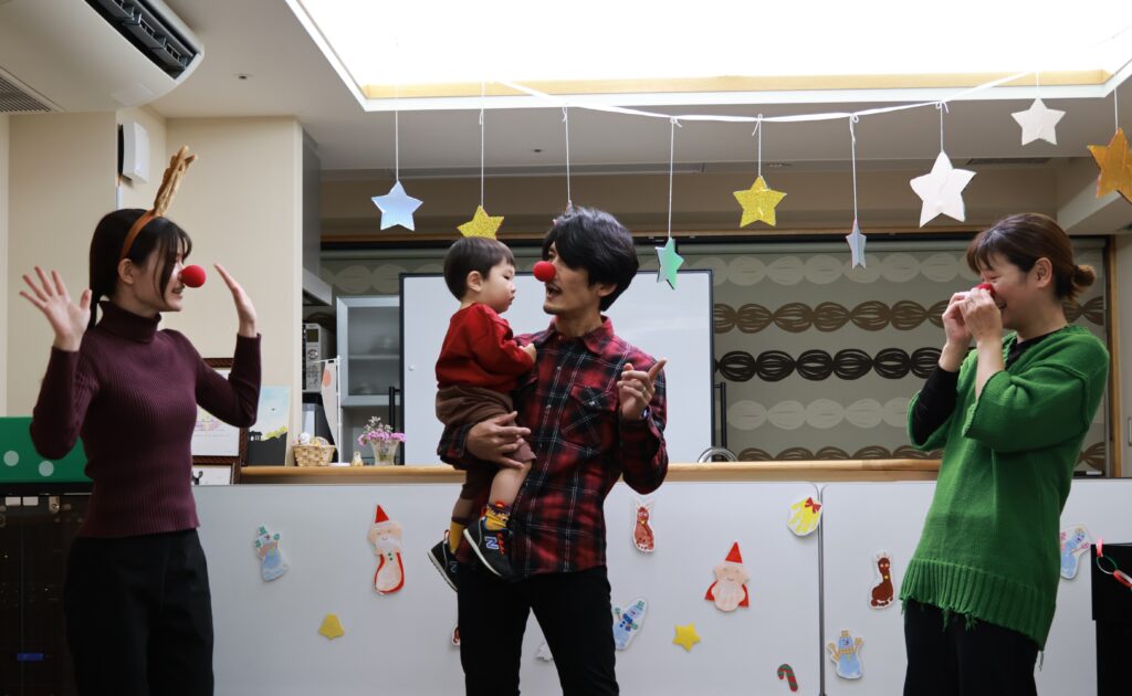 真っ赤なおはなのトナカイさんが寂しくないように、先生たちも赤いお鼻をつけよう!