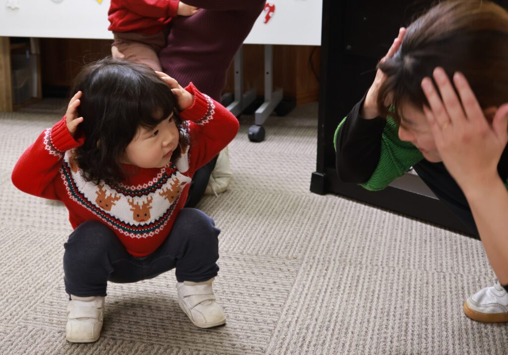 きらきらぼし、ジングルベルを歌っていると少しずつ気持ちも和らいできて、一緒に歌ったり身体を揺らしたりする子ども達の姿が…