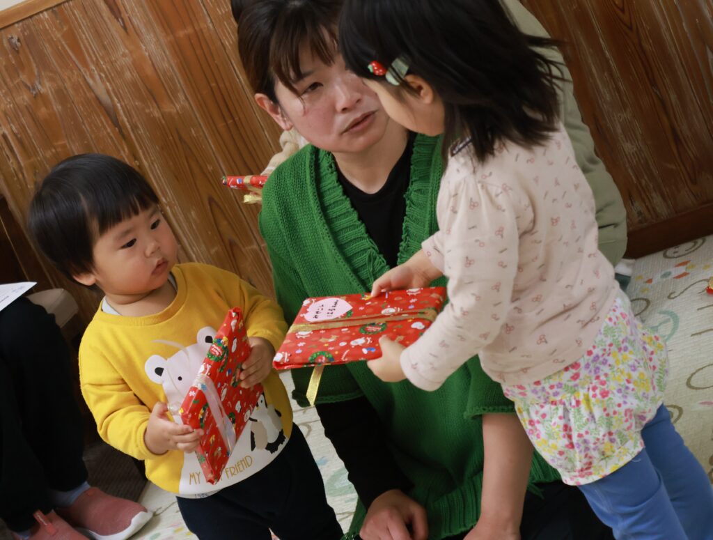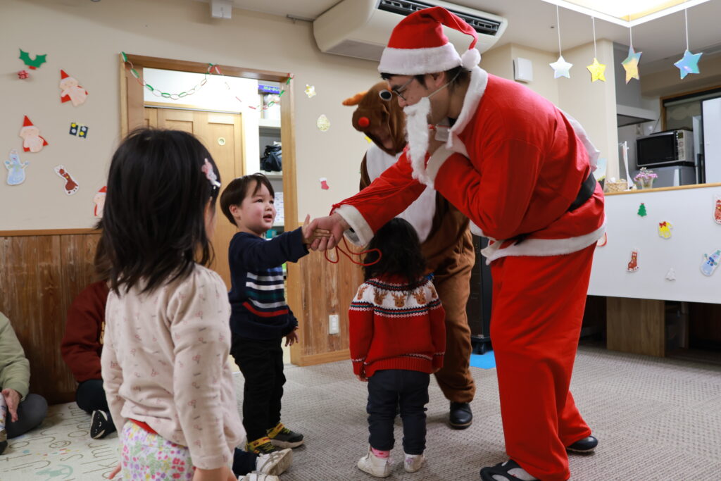 クリスマス会も終盤に近付いてきた頃…きたおおじ保育園の子ども達のところにもサンタさんとトナカイさんがやってきてくれました!